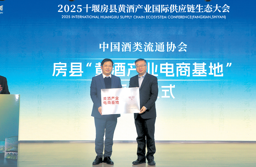 湖北日报客户端讯(通讯员潘世新、李炎、杜达巍 、许蕾)11月27日,2025十堰房县黄酒产业国际供应链生态大会在浸润千年酿酒底蕴的房县启幕。本次大会由中国酒类流通协会、中国酒业协会共同主办,以“酒韵承脉链通天下”为主题,汇聚了来自国内外的行业专家、电商平台代表、国际采购商及产业链伙伴。会上,中国酒类流通协会授予房县“中国黄酒产业电商示范基地”称号,亚太地标评价中心与全国生态食材评定中心联合为房县颁发“中国生态黄酒名城”认证证书。现场还发布了房县黄酒最新科研成果、标准化建设成果与多款创新产品。