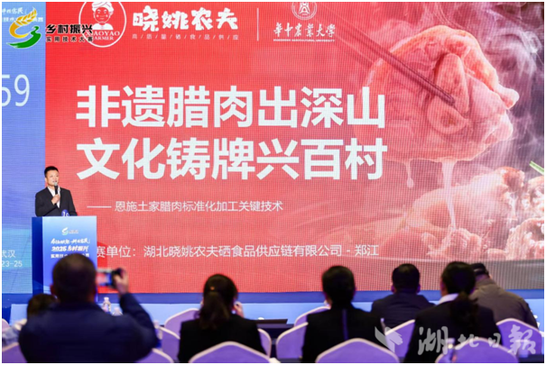 市场追捧的背后,是硬核技术的坚实支撑。近日在武汉落幕的 2025 年湖北省乡村振兴实用技术大赛上,晓姚农夫研发的 “恩施腊肉标准化加工的关键技术”,从众多参赛项目中脱颖而出,荣获优秀奖。该技术是企业联合华中农业大学打造的创新成果,系统解决了传统腊肉制作标准缺失、品质参差不齐的行业痛点,既守住了非遗技艺的文化根脉,又为腊肉产业现代化发展提供了科学方案,此次获奖更是对该技术实用性与创新性的高度肯定。