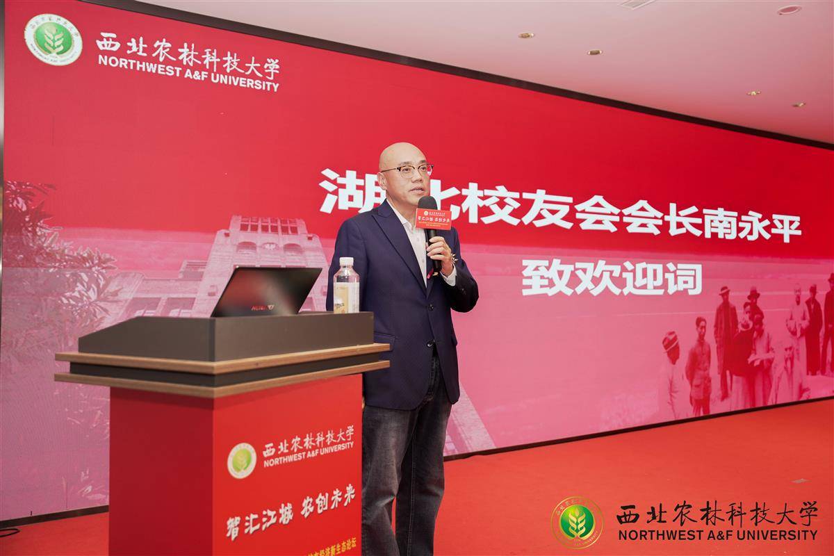 大会在庄严的国歌声中开幕,来自全球100家校友会的会旗陈列于会场两侧。西北农林科技大学湖北校友会会长南永平致欢迎辞,他代表在鄂3000名校友向来宾表示热烈欢迎。