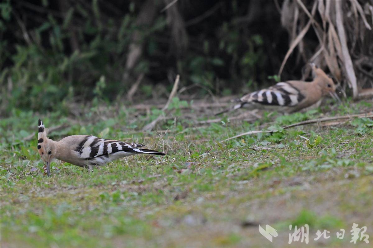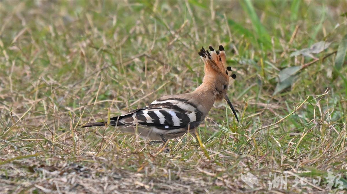 12月3日,初冬暖阳洒落宜昌点军桥边河湿地,几只戴胜鸟穿梭于水草与浅滩之间,时而低头探寻食物,时而驻足张望,悠闲觅食的身影构成一幅灵动的生态画卷。近年来,宜昌市持续深化湿地生态保护与修复工作,通过系统性治理与精细化管护,湿地生态系统质量稳步提升,生态环境持续优化。如今,宜昌湿地已成为众多鸟类迁徙途中的 “驿站” 与栖息繁衍的 “家园”,鸟类种类与数量较以往显著增长。戴胜鸟为有重要生态、科学、社会价值的陆生野生动物。(湖北日报全媒记者 刘曙松 摄)