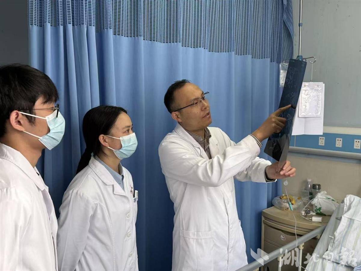李正伟(右)带领团队为李女士进行术后查房。(受访单位供图)