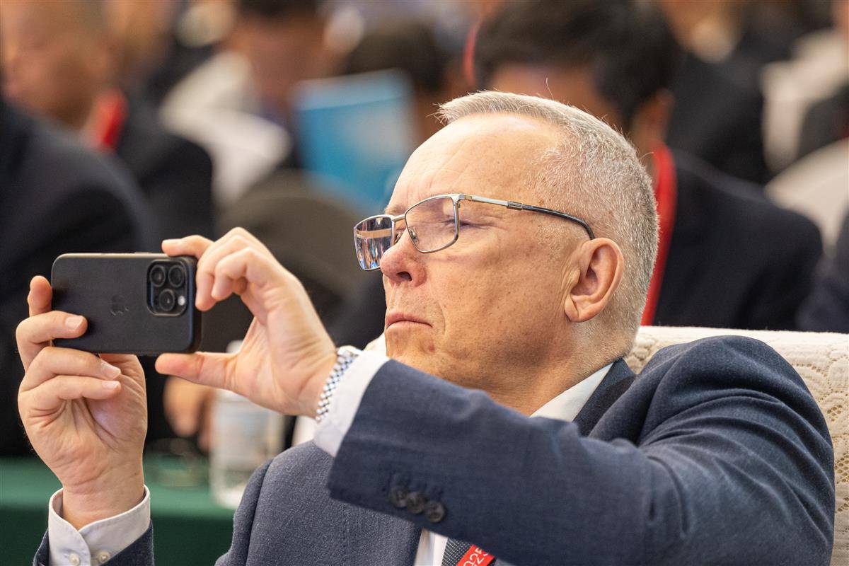 外国嘉宾现场聆听并拿出手机拍照。(湖北日报全媒记者 任勇 摄)