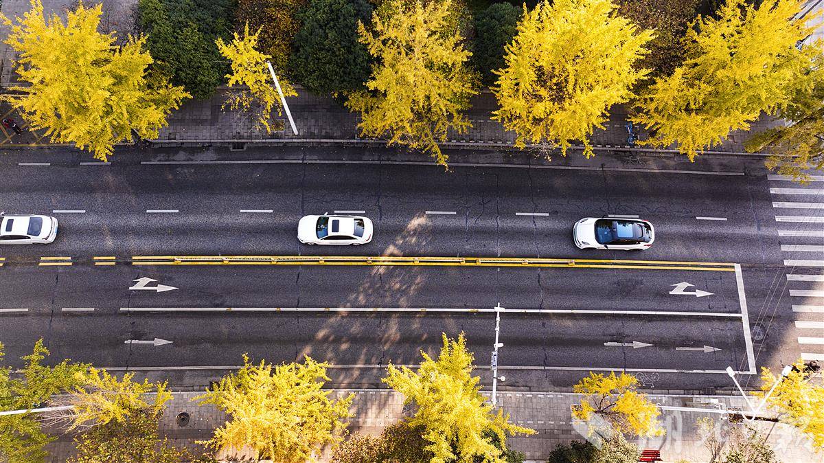 近日,武汉武昌首义路上的银杏叶黄了,一派迷人秋色。