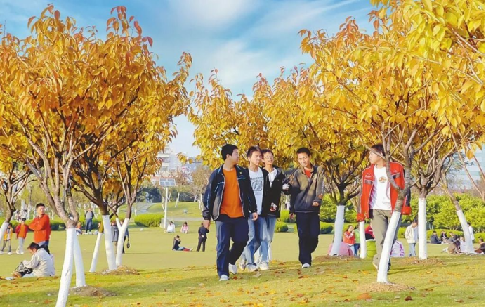 湖北日报讯(通讯员方仲华、张兮)秋日的阳光穿透鄂州各大公园的游园道路,将城市的每一寸土地都染成金黄与赤红的诗意。落叶如彩蝶般铺满蜿蜒小径,踩上去沙沙作响,像是秋天在轻声诉说季节的故事。晨光里,薄雾尚未散尽时,整片林子都浸在蜜色的光晕中,连空气也带着草木的甜香。