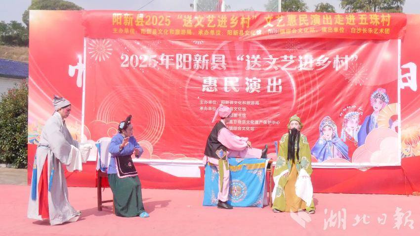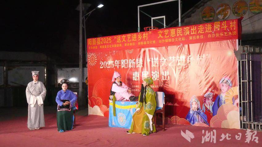 湖北日报讯(通讯员姜孝康)12月3日晚上,阳新县白沙镇长乐剧团来到金龙村,开展“送文艺进乡村”文艺惠民演出活动,精彩的节目,引来台下观众的阵阵掌声和欢呼声。