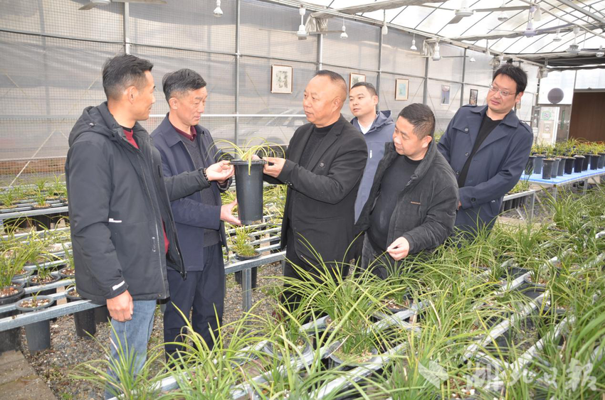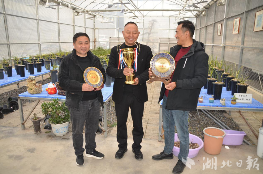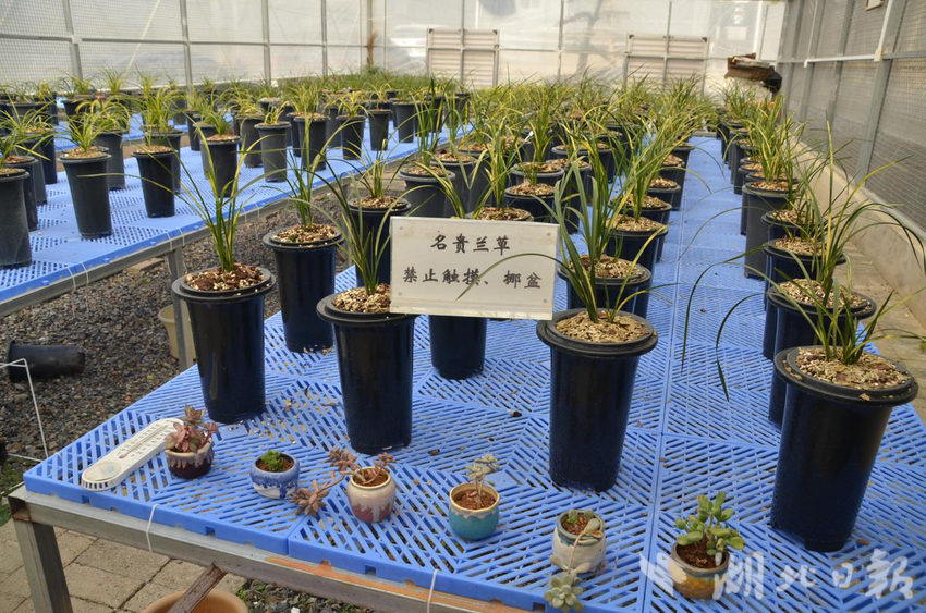 湖北日报讯(通讯员代秉权、聂冰、石守京)12月3日,寒风料峭,随县洪山镇温泉村40个数智大棚里温暖如春,3万余盆兰花、蕙兰、朱金、红草、斑草等珍稀品种正在茁壮生长,总经理严涛担起一盆获特等奖的名贵兰花,指导员工应用科学管理,保证兰花高质生长。
