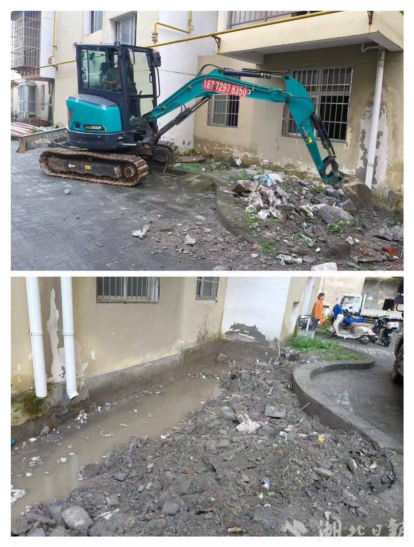 如中银广场1号楼2单元101室业主陈正月反映自家墙根处存在建筑垃圾堆积问题。该建筑垃圾源于该楼盘地产公司在项目前期建设过程中遗留的填埋废料,且因开发商后续失管,未按规范设置房屋排水渠,导致1号楼区域排水不畅,进一步加剧了垃圾堆积情况。为改善小区环境,10月17日,社区组织力量对小区内的建筑垃圾进行集中清理,累计清理65方,产生清理费用6840元。该费用理应由开发商承担或业主平摊,但开发商面临破产,且该楼业主入住率低,没人愿意平摊,社区左右为难,只好用有限的办公费解决。