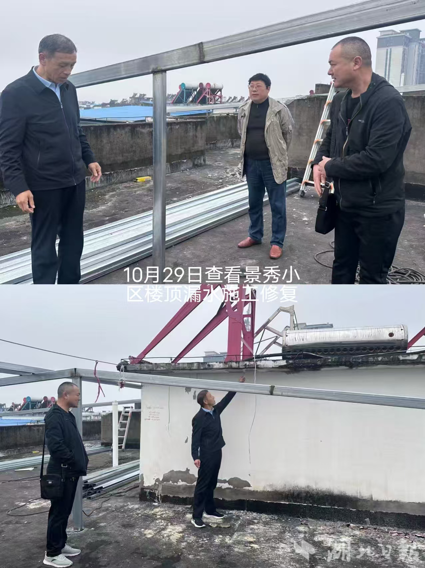 如景秀小区10多户居民反映所住楼房多层住户一遇下雨天雨水从楼顶往家里渗水,问题不解决就群体上访。会同住建部门协调过程中开发商说已过保修期,应由住户自己出钱修,住户说自入住以来开发商从没修过,各执一词,协调难度可想而知,管理处发挥“出力”精神,前后8次约开发商与住房户协商,终于感动开发商出资12万元进行了维修。