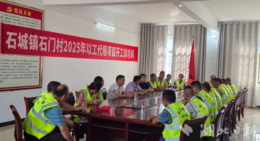 石门村创新采用“用工组织化、培训精准化、管理透明化”的工作方法,推动项目实施,激活内生动力。村党支部牵头成立务工合作社,以“技能摸底+双向选择”组建党员、退伍军人、返乡农民工为主力的施工队,优先吸纳脱贫户、留守妇女等群体,村民李大姐在家门口务工日均增收180元。项目建设过程中,党员干部与村民同劳动、共商议,成功化解用地协调等纠纷12起。