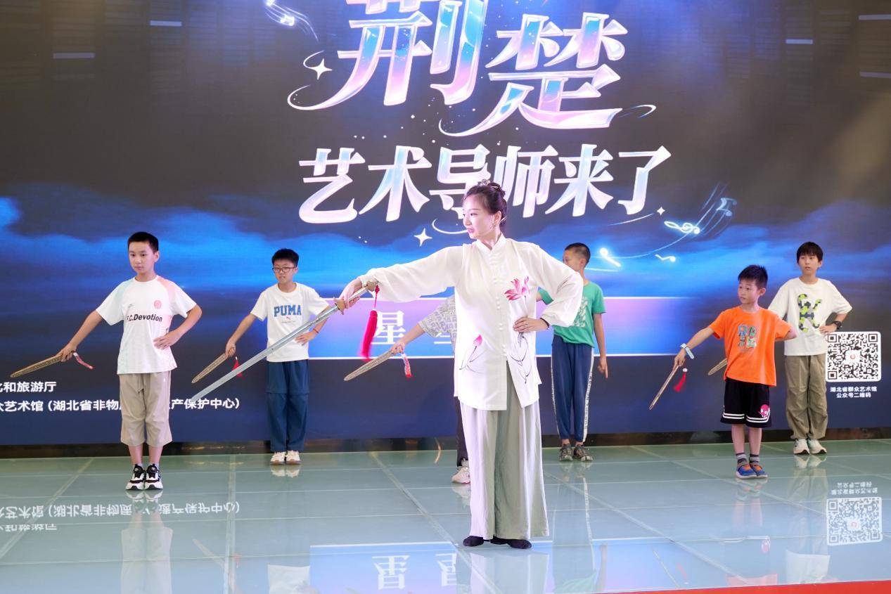 荆楚艺术导师在销品茂开展剑舞教学(通讯员 冯金浩摄)