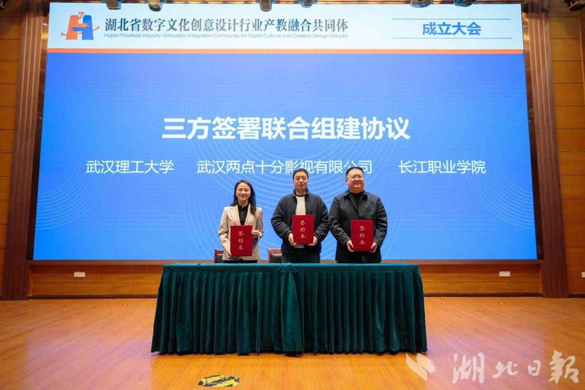 湖北日报讯(记者韩晓玲、通讯员张俊、张峥、韩淑萍)12月4日,湖北省数字文化创意设计行业产教融合共同体成立大会在长江职业学院举行。这一共同体在省教育厅指导下,由武汉两点十分影视有限公司、武汉理工大学、长江职业学院三方联合牵头成立。来自全省48家政府机构、高校、企业及行业组织代表汇聚一堂,共同见证这一推动产业与教育深度融合的重要平台正式启航。
