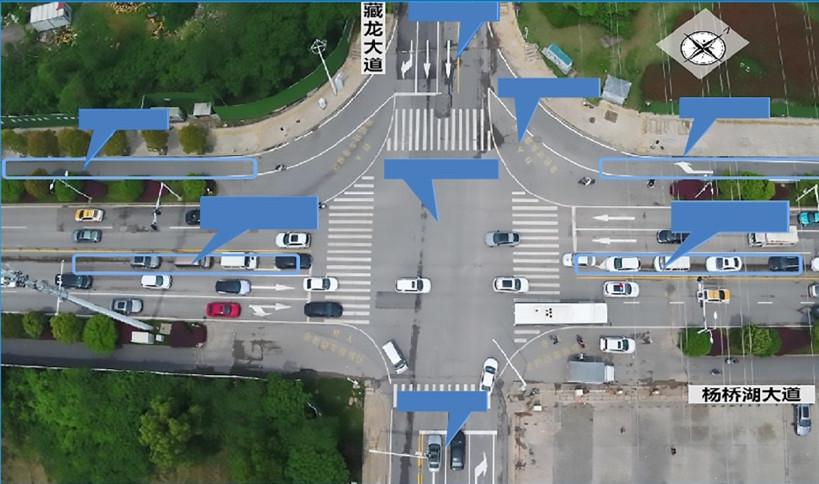 在杨桥湖大道路口,长江日报记者看到,改造前,各路口均为双向四车道。优化后,现在各路口进车道增加一道,各路口出车道减少一道。据路口执勤交警介绍,这样,道路没有增减的情况下,通行效率提升25.3%。高峰期拥堵延迟指数下降15.2%。