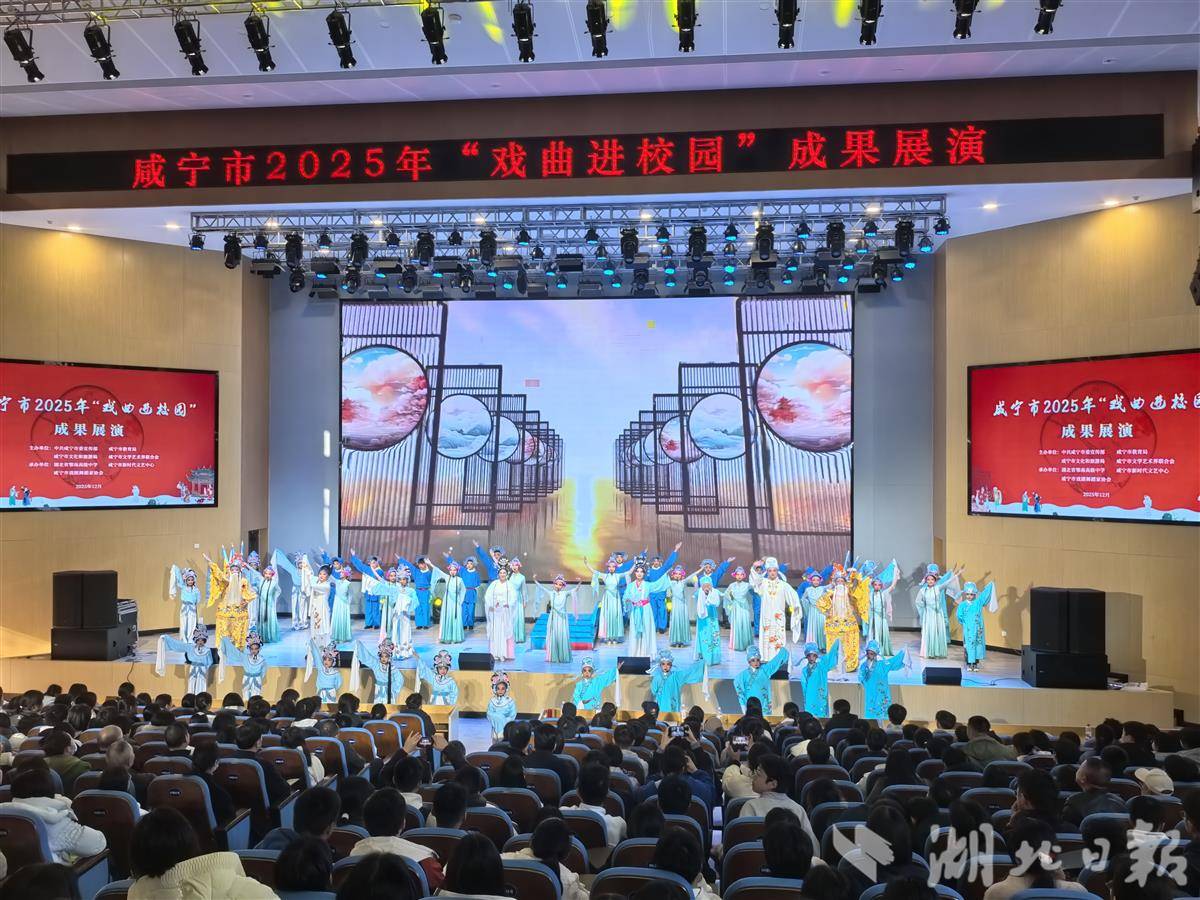 湖北日报讯(记者夏中华、通讯员张欢)12月3日,鄂南高级中学敏学楼,咸宁市2025年“戏曲进校园”成果展演举行,来自该市各县市区及咸宁职业技术学院的12所学校200余名师生登台献艺,用唱念做打演绎传统戏曲文化魅力。