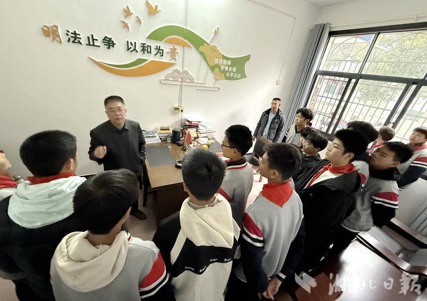 湖北日报客户端讯(通讯员 蔡雨洧)12月4日是第12个国家宪法日,当天上午,宜都市红花套中学801班学生走进红花套法庭、司法所,开展“沉浸式”大思政课实践活动,在亲身体验中感受法律庄严、学习宪法知识。