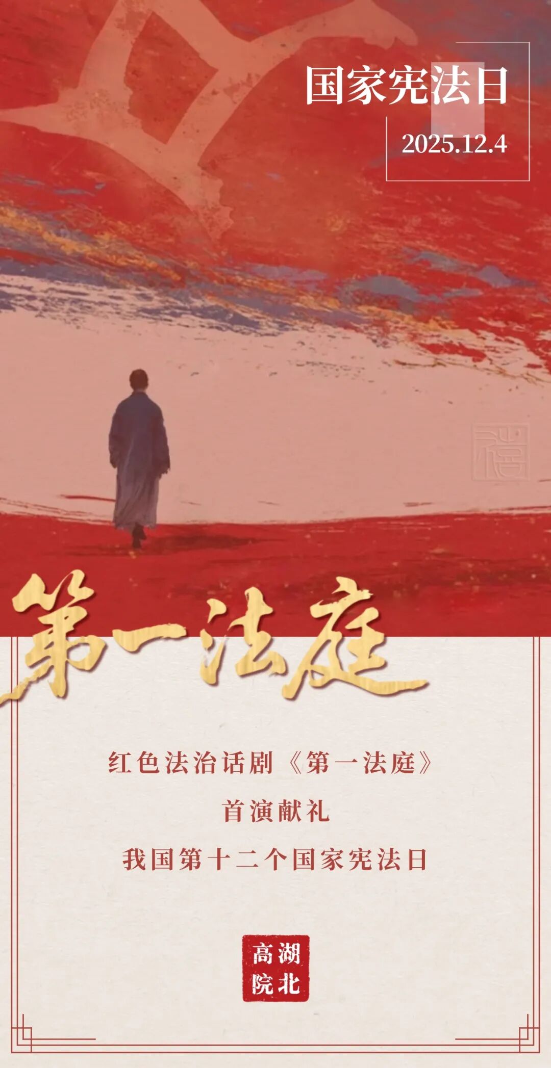 12月4日晚,湖北省高级人民法院与中南财经政法大学联合出品的红色法治话剧《第一法庭》在中南财经政法大学(南湖校区)南湖会堂首演,献礼我国第十二个国家宪法日。