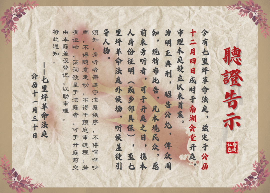 它第一次让民众们意识到原来“革命法庭”意味着公堂不下跪,告状不喊冤,抬头不称“大人”,低眉不说“草民”,官司分文不取;