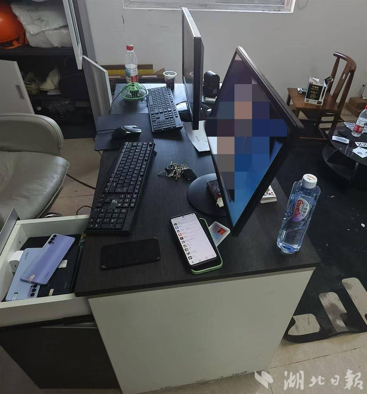 11月21日上午,民警果断收网,抓获李某、张某等两名嫌疑人。民警现场查获多部作案电脑、手机、电子证据。