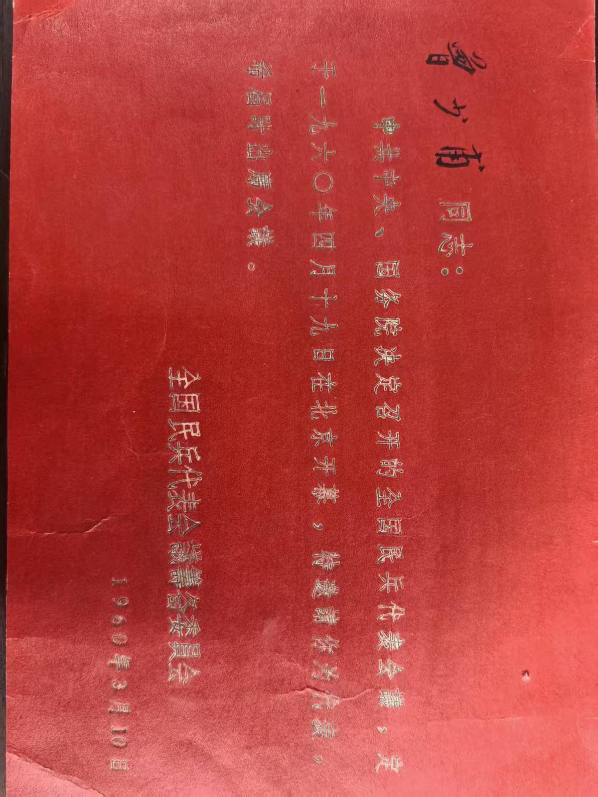 曾少甫出席全国民兵代表大会的邀请函。(湖北日报全媒记者 柯利华 摄)