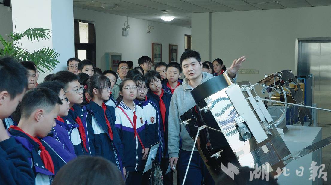卫星地面站大厅里陈列有武汉大学“珞珈”“启明星”等系列科学试验卫星模型,学生认真聆听每颗卫星的特点、用途以及地面站的任务和运行状态,少年的眼睛里满是对浩瀚宇宙的憧憬。