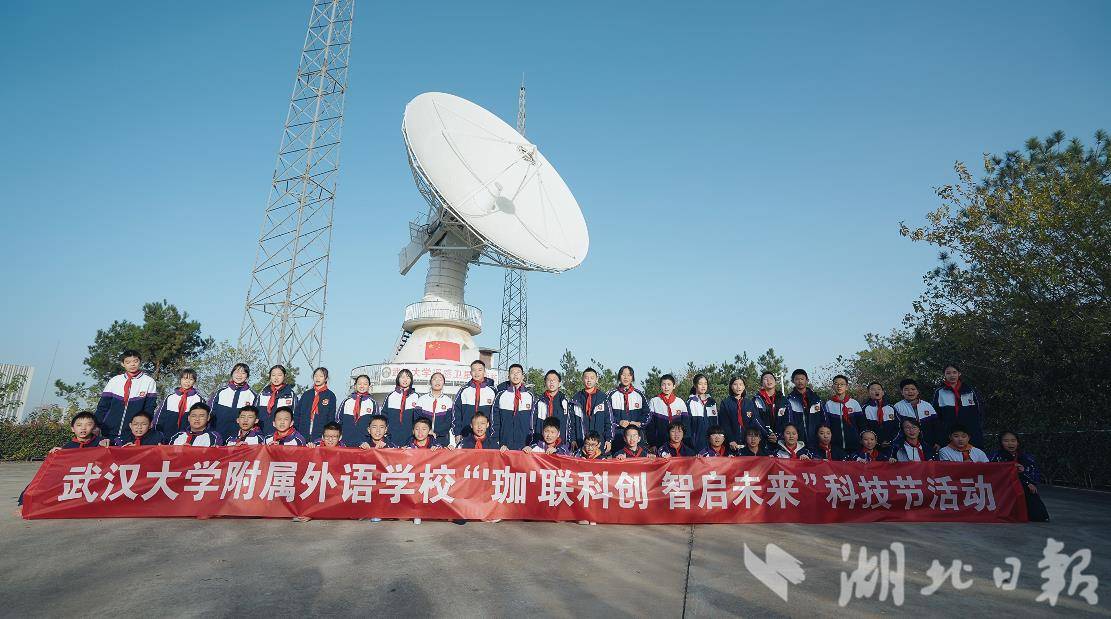 观卫星天线、听科普讲座……感受卫星遥感的神奇魅力。11月27日,武汉大学附属外语学校(以下简称武大外校)七年级40余名学生走进武汉大学遥感卫星地面站,此次活动是该校“珈”年华科技节的校外实践活动之一。
