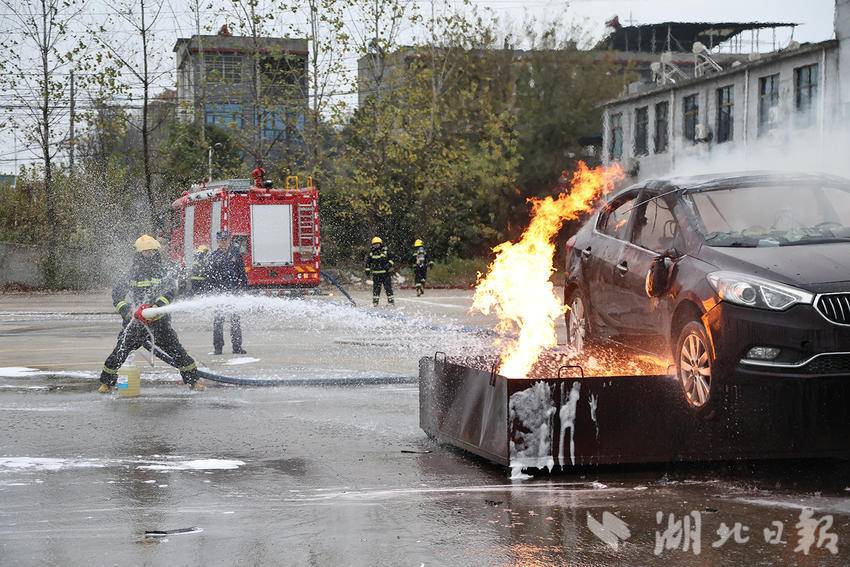 新能源车辆火灾模拟处置区域,消防员精准把握这类火灾处置难点,快速铺设水带、科学实施冷却,凭借娴熟的操作技能和精准的处置策略,高效完成灭火作业,用规范的动作与快速的响应,展现出过硬的应急救援本领。