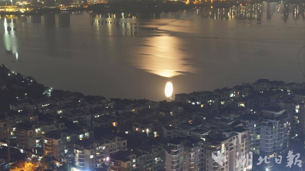12月5日晚,今年最后一次超级月亮照亮江城。在武汉南湖畔,皎洁月光随涟漪拉长摇曳,形成“双月同辉”的景象。