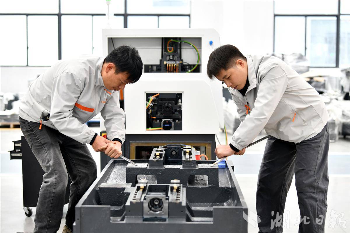 12月3日,在通城县经济开发区湖北中聪智能装备有限公司数控机床组装车间,技术人员正在装备高端数控机床。总投资5.18亿元的湖北中聪智能装备有限公司高端数控机床项目一期,近日在通城正式投产。通城县政府优化营商环境,致力于当好服务企业的“店小二”,从昔日荒山到如今现代化标准厂房拔地而起,该项目仅用180天便完成落地投产,刷新了项目建设的“通城速度”,实现了高端数控机床的“进口替代”能力在通城生根发芽,更将强力带动本地高端智能装备整体升级转型,引领制造业向高质量发展迈进。(视界网 刘建平 摄)