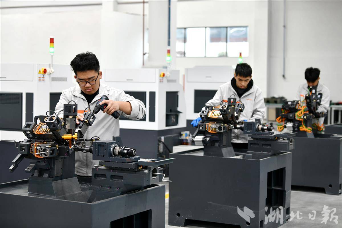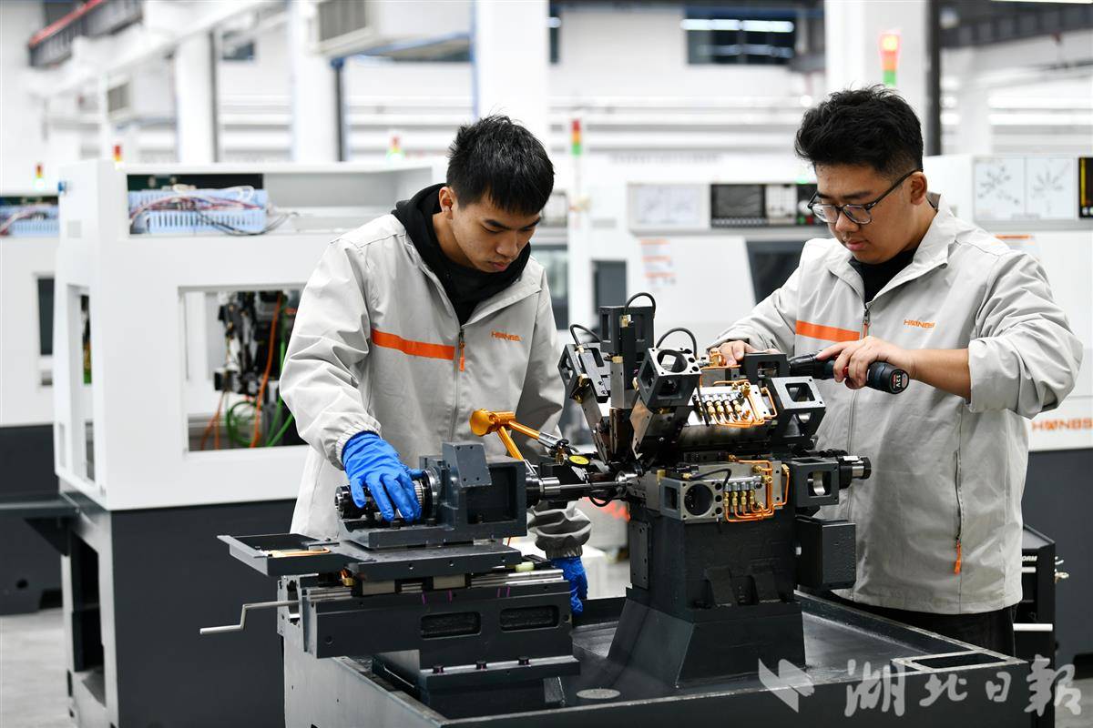 12月3日,在通城县经济开发区湖北中聪智能装备有限公司数控机床组装车间,技术人员正在装备高端数控机床。