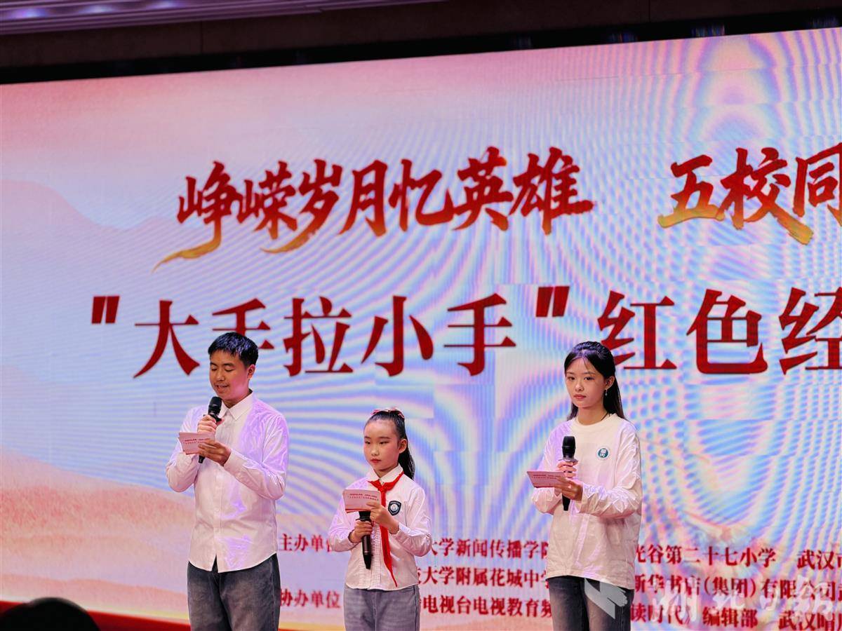 两校大学生和光谷地区中小学生以“峥嵘岁月忆英雄 五校同心颂荣光”为主题,开展了一场沉浸式、体验式红色经典领读会。