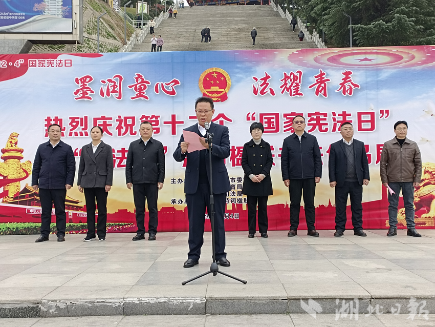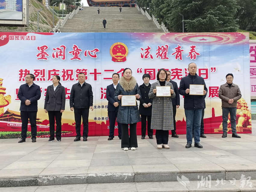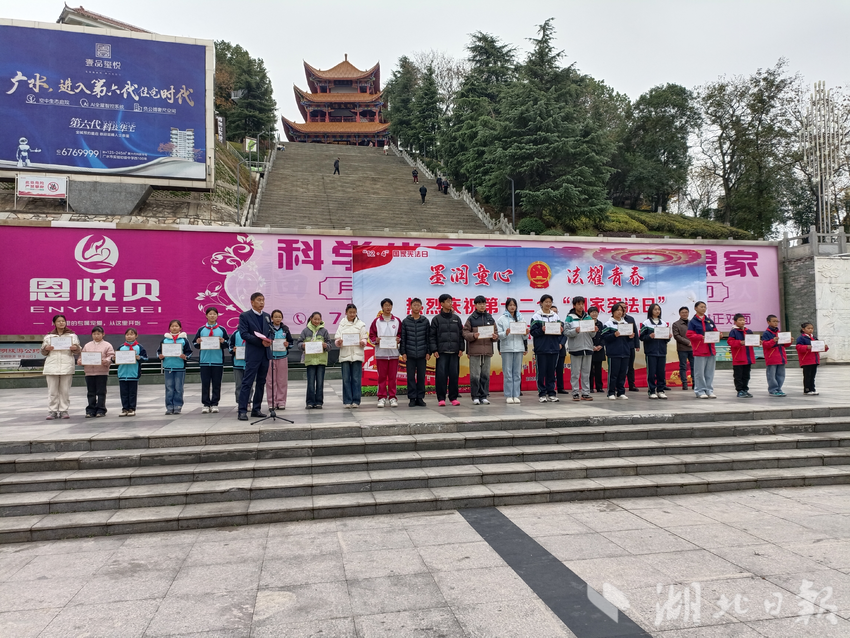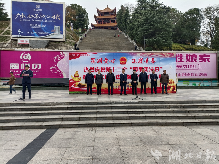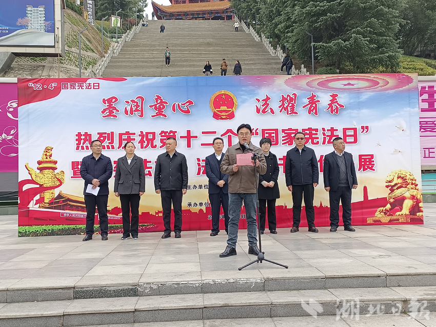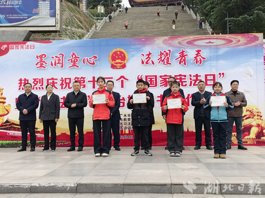 湖北日报讯(通讯员刘小斌)笔墨寄初心,法治润少年。12月4日上午9时,广水市应山办事处印台广场彩旗飘扬、书香氤氲,广水市第十二个“国家宪法日”开幕式暨“宪法杯”法治楹联书法作品展正式启幕。本次活动以“墨润童心 法耀青春”为主题,将中华传统楹联书法艺术与法治宣传教育深度融合,为全市群众呈现了一场兼具文化底蕴与法治温度的视听盛宴。