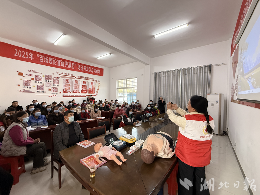 湖北日报讯(通讯员秦如玉)12月5日,在第40个国际志愿者日到来之际,为深入践行“奉献、友爱、互助、进步”的志愿服务精神,弘扬“人道、博爱、奉献”的红十字精神,安陆市红十字会组织志愿者走进卓塆社区开展应急救护培训暨健康义诊志愿服务活动。安陆市卓塆社区、十塘社区两委干部、网格员及居民代表50余人参加,在节日氛围中收获实用技能与暖心健康关怀。