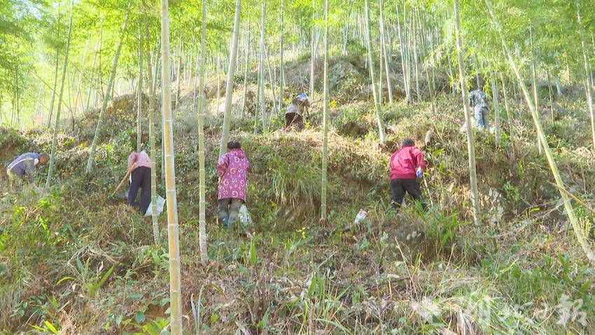 记者在现场看到,一株株嫩绿的黄精幼苗在竹林的天然遮蔽下扎根,与挺拔的翠竹相映成趣。阳光透过竹林投下斑驳的光影,农户们手持锄头挖坑、放苗、盖土,一系列动作娴熟又细致。