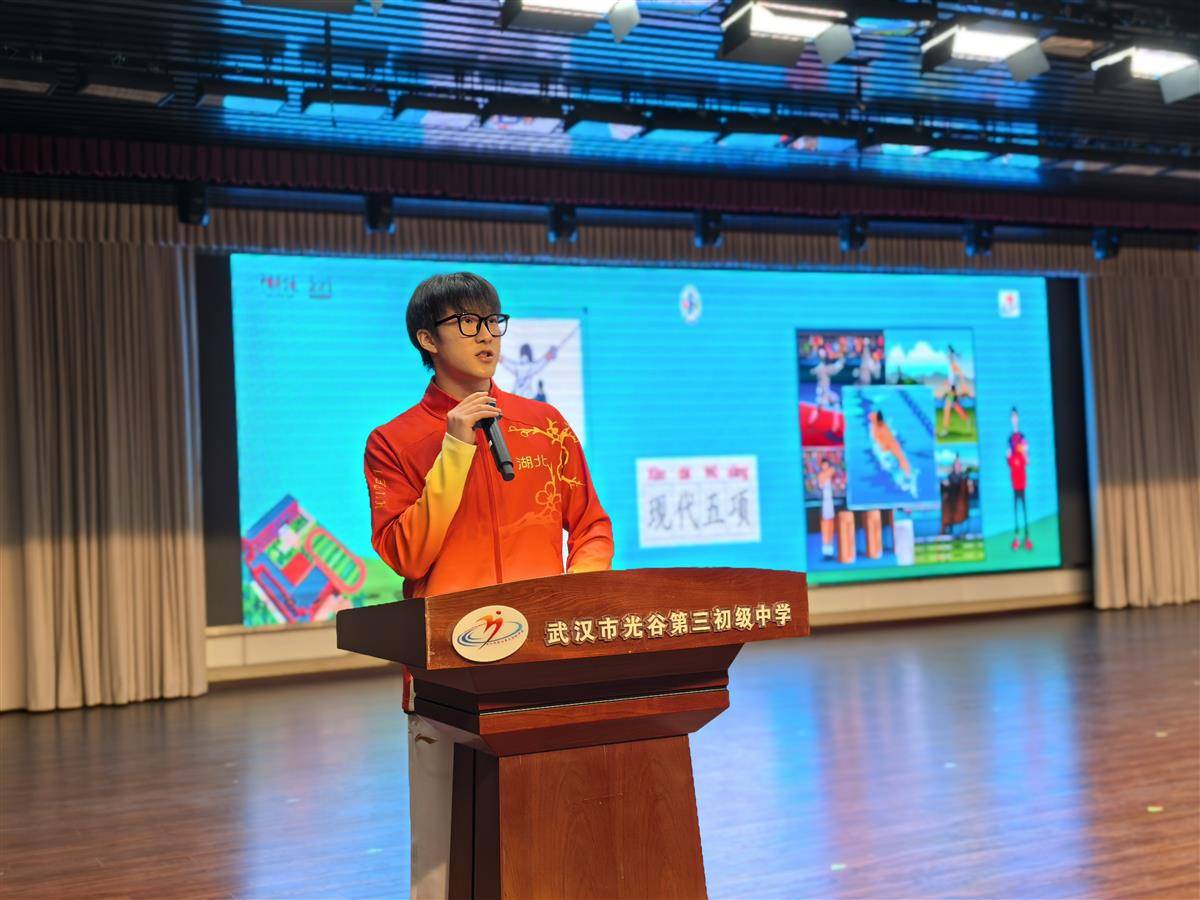 湖北日报讯(记者童军鹏、通讯员刘璐)12月5日,“中华体育精神大讲堂”校园宣讲活动、“冠军体育课”运动员进校园活动来到武汉市光谷第三初级中学,我省十五运会现代五项(老五项)冠军陈柏良通过分享励志成长故事,将中华体育精神传递给在场的师生,鼓励同学们学会坚持,成为最棒的自己。