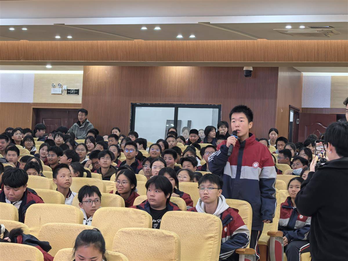 互动问答时,现场同学们踊跃举手,围绕“怎么在低谷中坚持过来?”“如何找到自己真正热爱的事情?”“比赛前紧张该如何调节?”等问题,陈柏良逐一耐心解答。“热爱是最好的动力,发现你自己的特长和优点,然后坚持到底。”