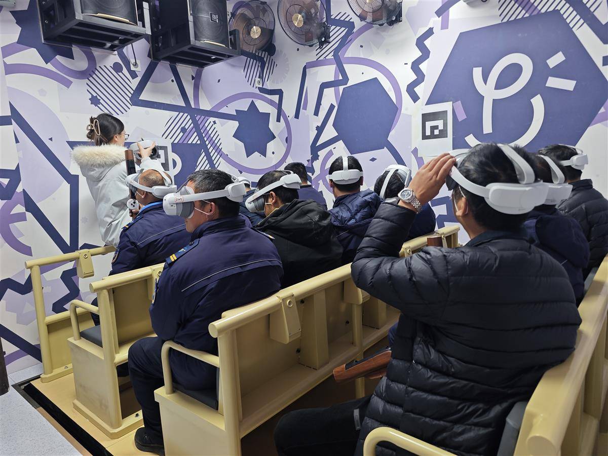 活动首站走进“长征·四渡赤水·全感剧场”。党员们佩戴AR设备,在声光电交织的立体战场中“亲历”革命征途。267路驾驶员李军林感慨道:“四渡赤水的智慧与信念催人奋进,AR体验既震撼心灵又凝聚力量,我会绷紧安全弦,以平稳驾驶守护乘客平安,在岗位践行全会精神。”