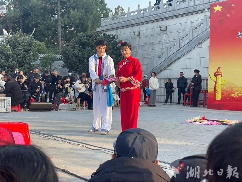 湖北日报讯(通讯员熊峰)12月5日下午,麻城市文化小镇广场暖阳正好,由省文化和旅游厅牵头、湖北省戏曲艺术剧院精心打造的“同心建支点文化惠民生”文艺轻骑兵演出在此热闹开演。3 0余名专业演职员带着清一色的楚剧精品剧目,用醇厚地道的唱腔、原汁原味的表演,为千余名市民送上一场免费的楚剧盛宴,现场叫好声、鼓掌声此起彼伏,冬日里的广场被浓浓的戏味与暖意包裹。