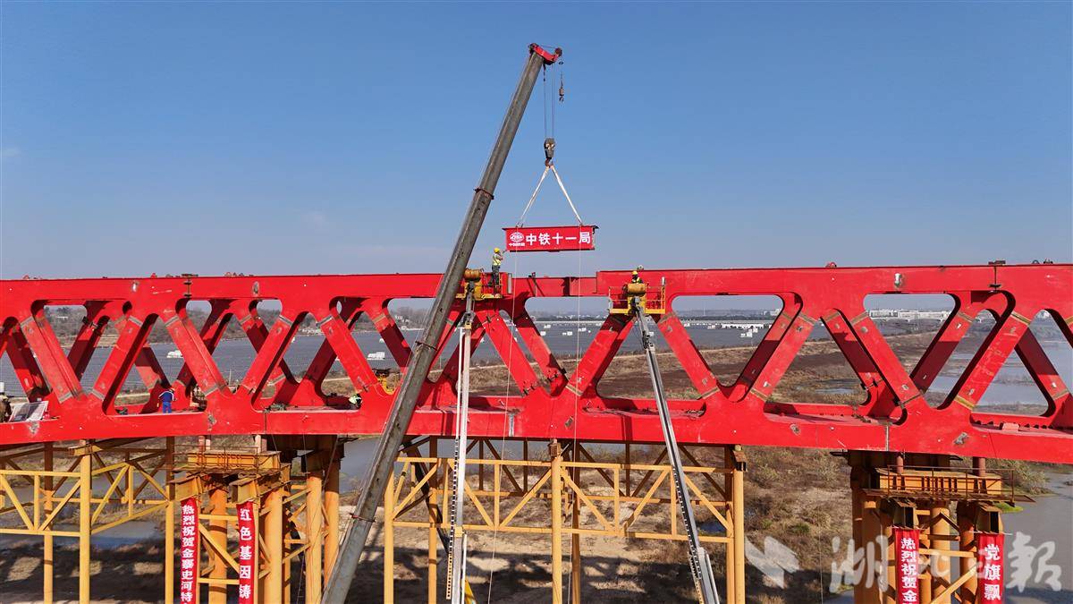湖北日报讯(记者林晶、通讯员赵越、彭特)12月6日10时许,随着最后一节钢桁梁精准吊装到位,由中铁十一局承建的合武高铁金寨史河特大桥钢桁梁成功合龙,标志着桥梁主体结构施工取得突破性进展,为全线贯通奠定了坚实基础。