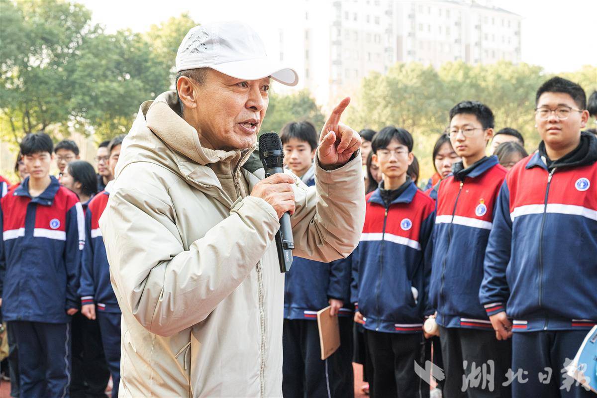 在福建舰的模型前,曾出演《红海行动》的著名演员王强现身为学生讲解中国航母发展的历史。王强对学生们说,未来战争是科技的战争,是人才的比拼,希望同学们刻苦学习,踊跃报考军校,为国防军事建设作出自己的贡献。(湖北日报全媒记者 曾雅青 任勇 通讯员 曹翰文 肖云飞)