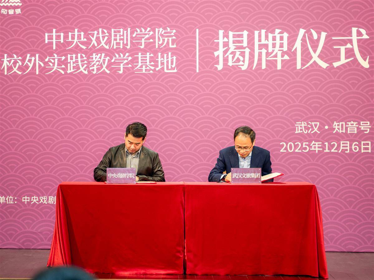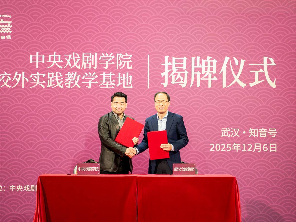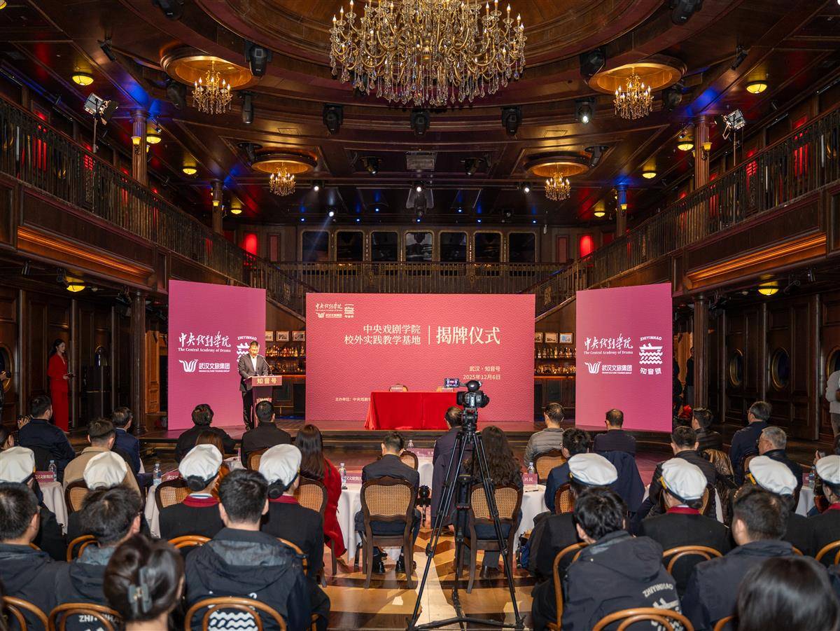 2025年12月6日,武汉文旅集团与中央戏剧学院在“知音号”联合挂牌,共建“中央戏剧学院《知音号》校外实践教学基地”。中央戏剧学院党委副书记、院长郝戎,《知音号》总导演、中央戏剧学院客座教授樊跃、武汉文旅集团党委书记、董事长李涛等各界嘉宾共同出席揭牌仪式。据了解,这是中国顶尖艺术学府与武汉城市文化名片首度战略携手,也是湖北首个“戏剧艺术+文旅实践”产教融合项目,双方将深度构建产学研协同创新与产教融合机制,打造产教研一体化合作体系,在文艺创作、人才培养、产业发展等方面,为武汉乃至全国文旅演艺行业打造兼具专业性、学术性和前沿性的创新标杆。(湖北日报全媒记者 何宇欣 摄)
