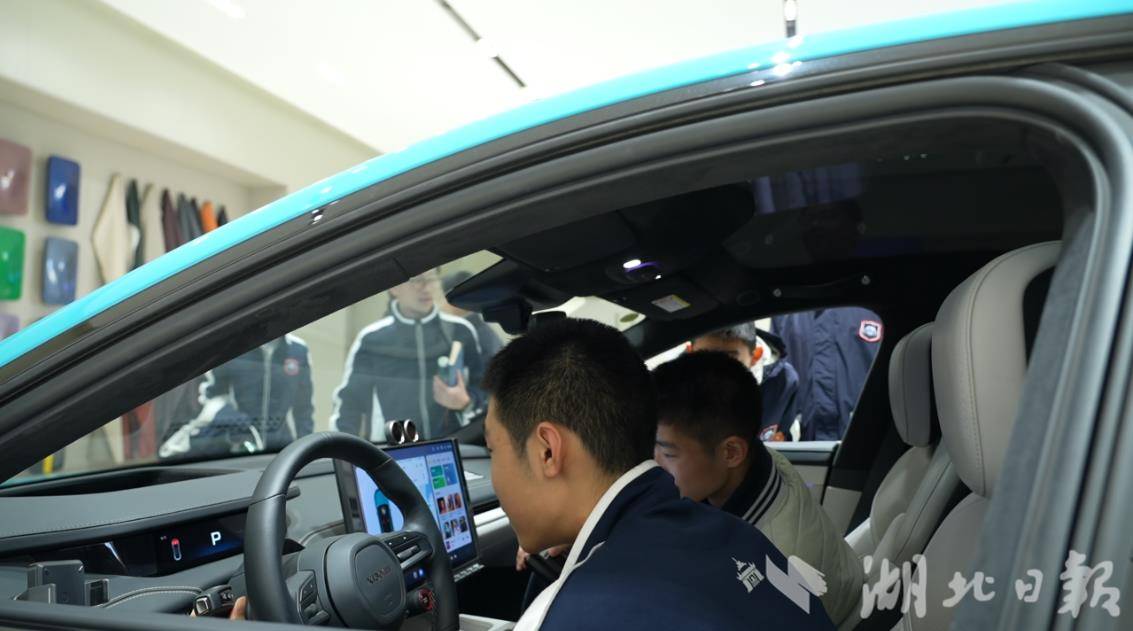 讲解结束后,同学们乘车前往小米汽车交付中心,近距离体验科技产品的“落地魅力”。在陈列着多款车型的展示厅里,大家迫不及待坐进车内:座位靠背的按摩仪可调试多种模式,中控大屏的3D虚拟模型能一键模拟开启后备箱、引擎盖……丝滑的操作、舒适的设计,让同学们连连赞叹,“原来科技可以这么贴心!”