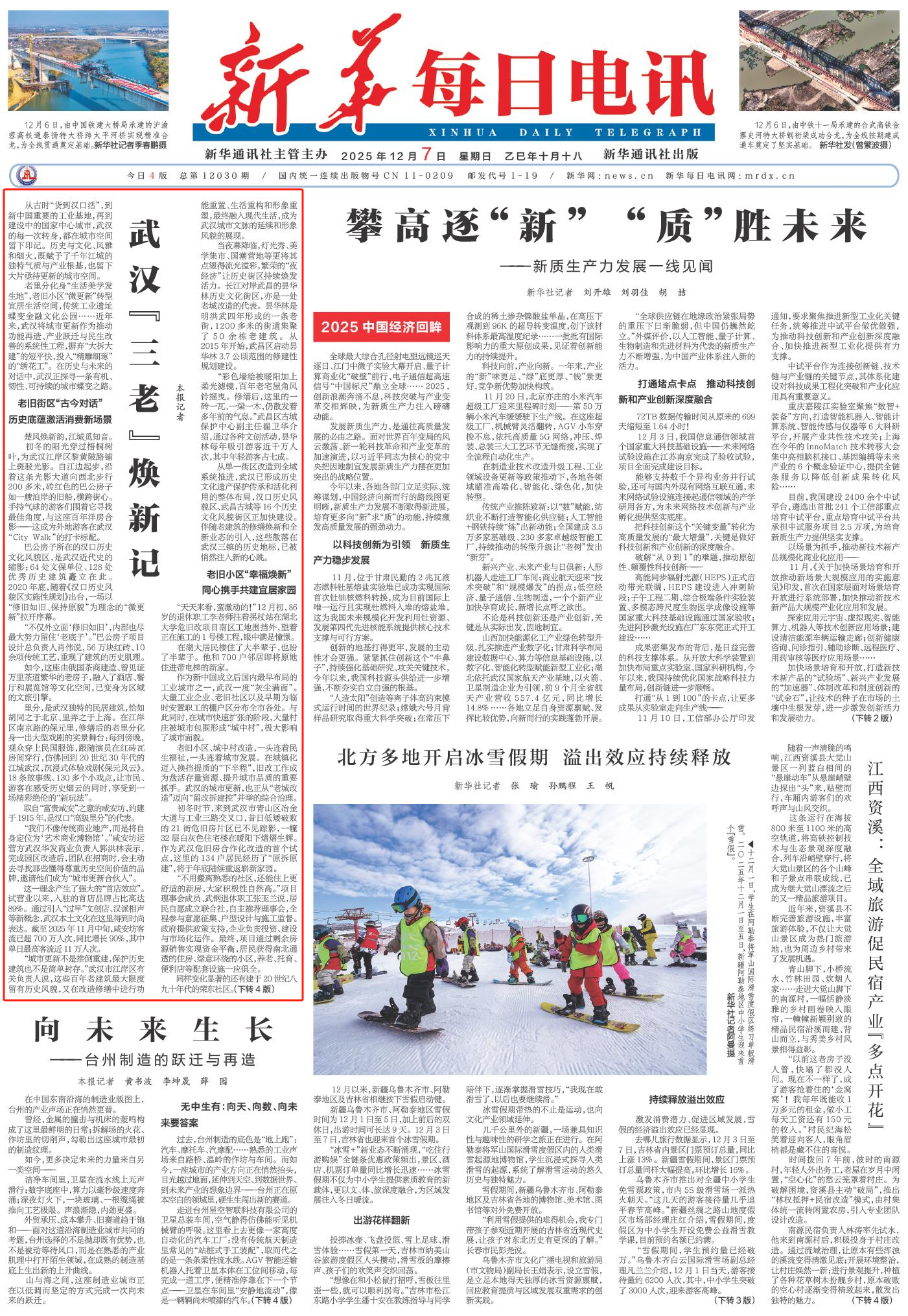 12月7日,新华每日电讯头版头条聚焦湖北,刊发文章《武汉“三老”焕新季》,关注报道武汉老旧街区、老旧小区、老旧厂区的更新与蝶变。以下为报道全文: