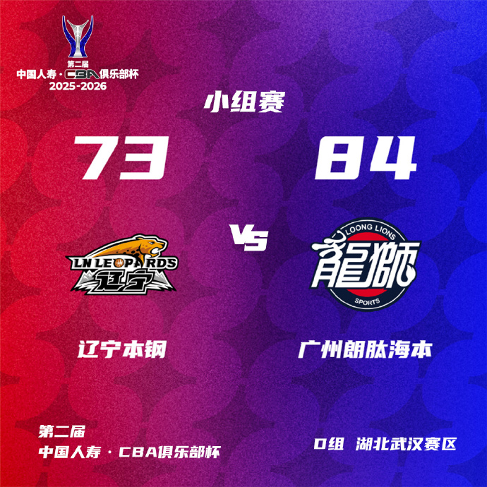 晚间进行的比赛,由辽宁本钢对阵广州朗肽海本。缺少核心后场的辽宁队与小组赛两连败的广州队展开胶着较量,最终广州队凭借末节一波流完成逆袭,以84-73锁定胜局。