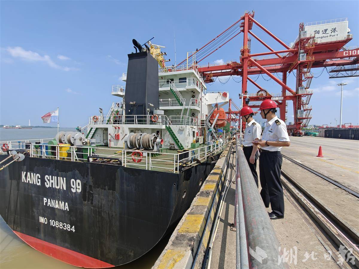 武汉新港海关关员在武汉阳逻港开展直航通关服务。