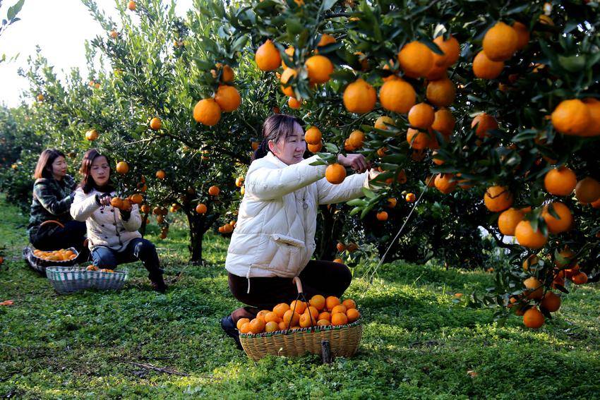 12月6日,在十堰市郧阳区杨溪铺镇刘湾村,游人在采摘柑橘。湖北日报通讯员 曹忠宏 摄