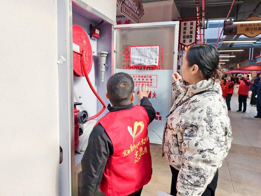 活动现场孩子们化身“安全小卫士”,在市集内仔细观察,检查地面的防滑标识是否清晰完好,消防器材是否过期。同时在志愿者的引导下,孩子们还重点了解了市集内配备的消防器材,学习识别身边可能存在的安全隐患,将安全教育融入实地探访中。