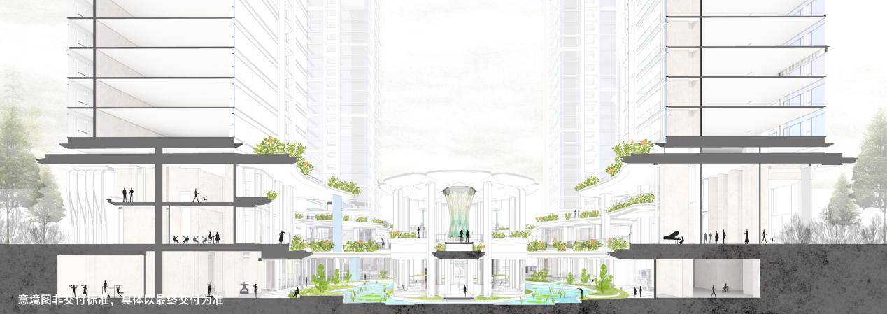 在空间组织上,打造环形场景,构建连续动线,通过风雨连廊与地下体系实现全域互联。这样的设计不仅提升使用便捷性,更让社交自然发生:邻里在步行中相遇、在场景中交汇,使高净值社区的圈层黏性、亲切附近与生活温度得以真正建立。