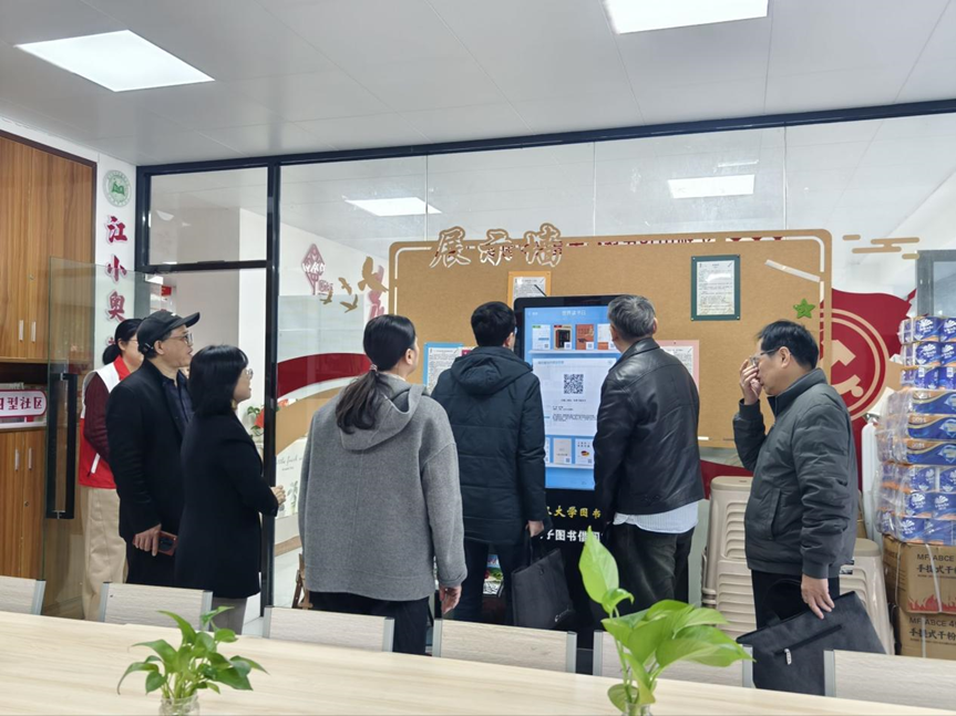 实地察看环节,验收组走访图书阅览室、奥林花园58栋和谐广场等区域,查看场地布局、设施配置、安全管理等情况,现场观摩数字化阅读和学习设备。座谈会上,奥林社区负责人围绕学习中心建设背景、场地规划、特色服务、品牌打造及未来规划作详细汇报。