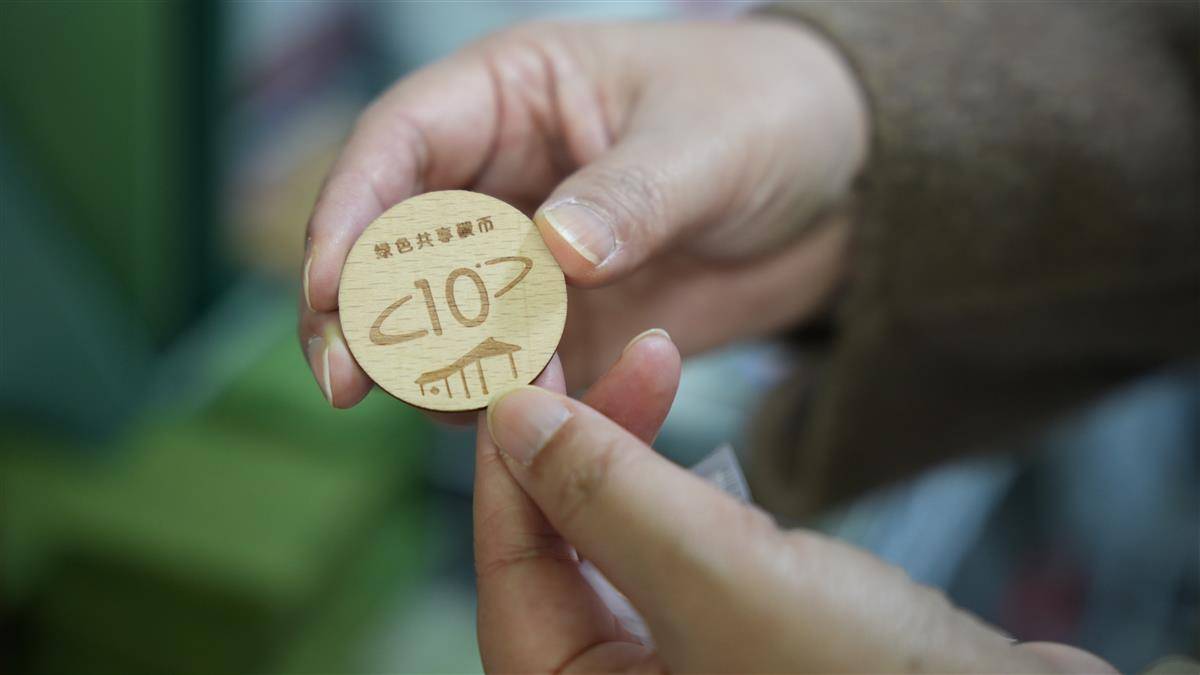 记者在环保社区绿色低碳超市看到,碳币与硬币同等大小,以可再生木材为主要原料制作而成,正面刻有“绿色共享碳币”的文字与数字积分,背面雕刻环保社区绿化图案。每枚碳币面额是10积分。