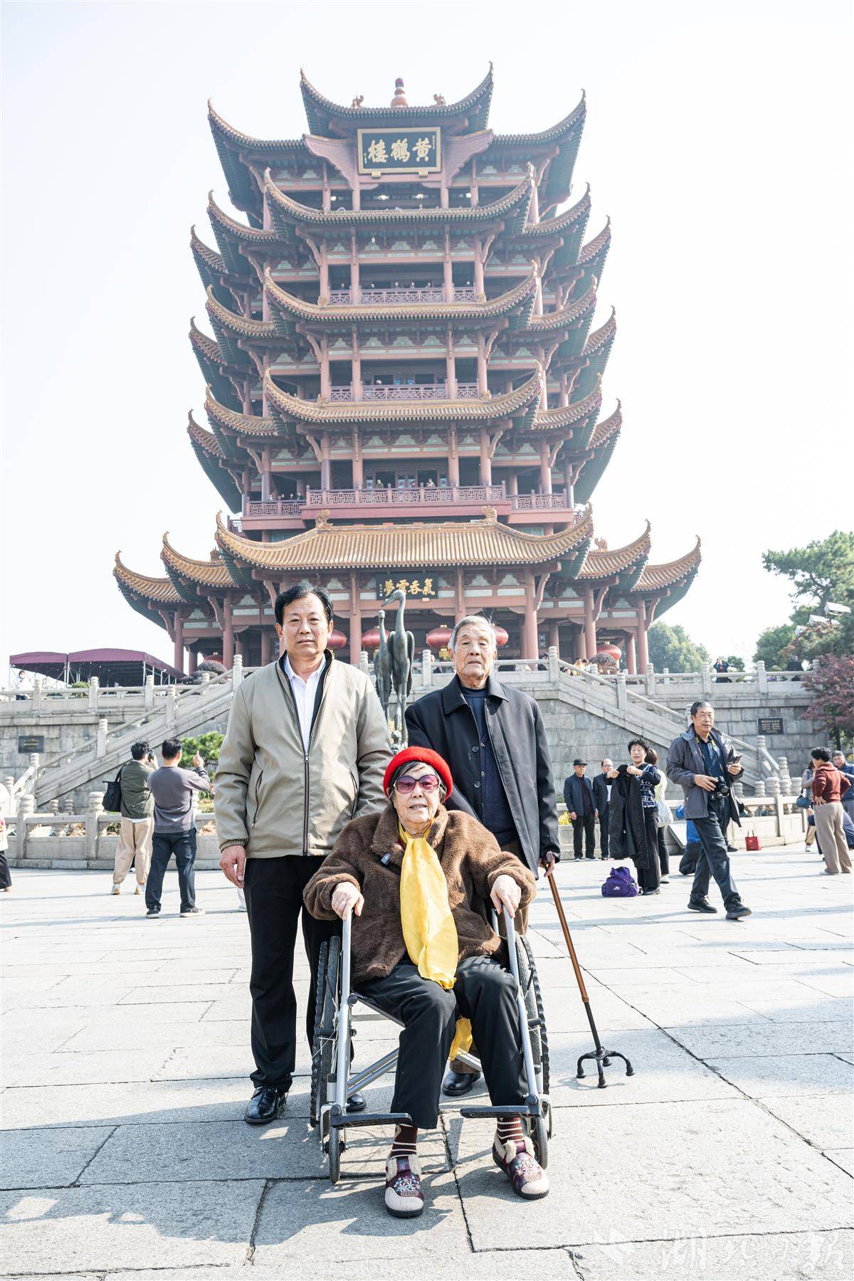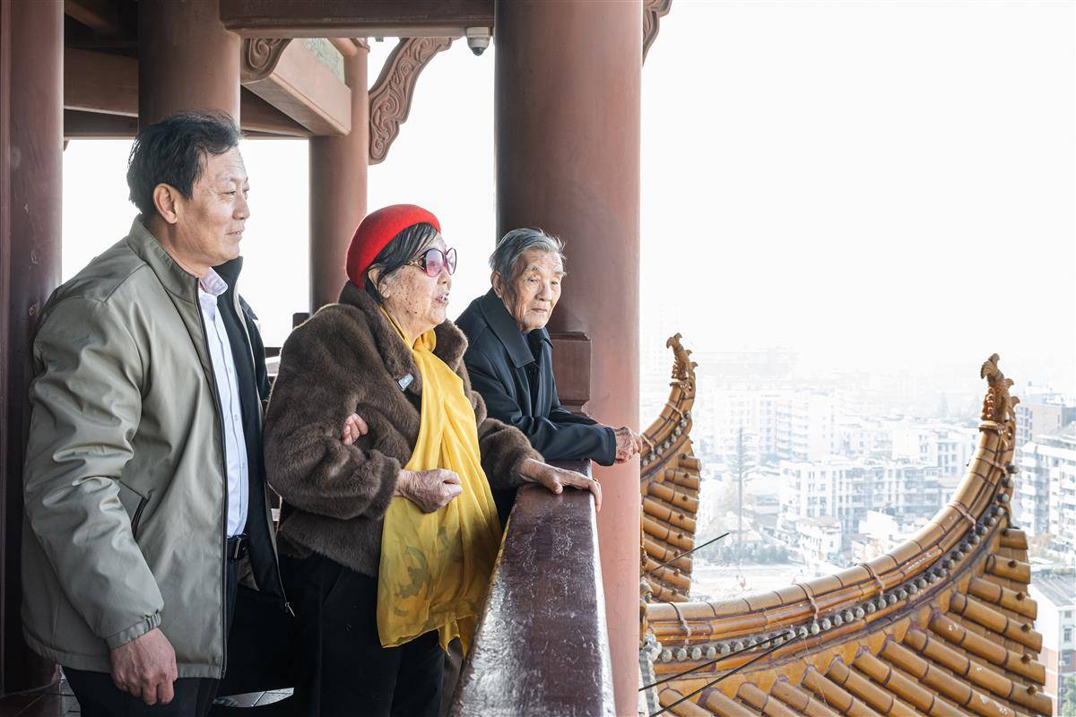 12月8日,抗日时期革命烈士黄骅的小女儿黄鲁彬和家人回到家乡湖北,登上心心念念的黄鹤楼。(湖北日报全媒记者 任勇 王孝武 通讯员 江萌 摄)