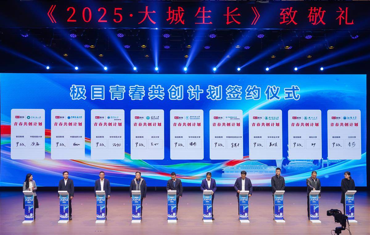 大城生长,致敬城市中的青春力量。“141万名在汉大学生眼中,有141万个不一样的大武汉。”活动现场,极目新闻与武汉大学、华中科技大学等15所高校签约启动“极目青春共创计划”,一批大学生受聘为“青春推荐官”。“改造不是一键删除,而是像绣花针一样,一针一线将新与旧缝合成最美的画卷。”作为“青春推荐官”代表,中南财经政法大学学生龙静雯讲述了她触摸到的城市温度。未来,这些推荐官将持续以青春之笔描绘武汉之美。
